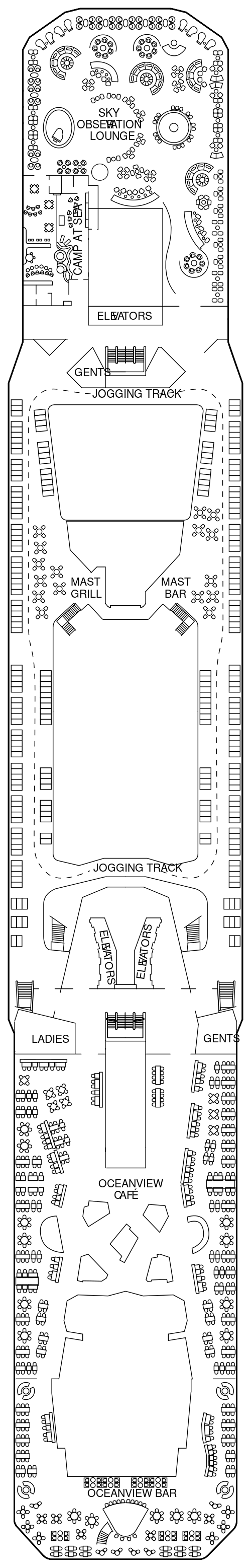 12万トンというスケールを活かした、解放感溢れる施設が満載です。本物の天然芝を敷き詰めたオープンデッキ「ローンクラブ」や、世界最大規模のスパなど、日常の喧騒から離れた贅沢な時間をたっぷりとご堪能ください。